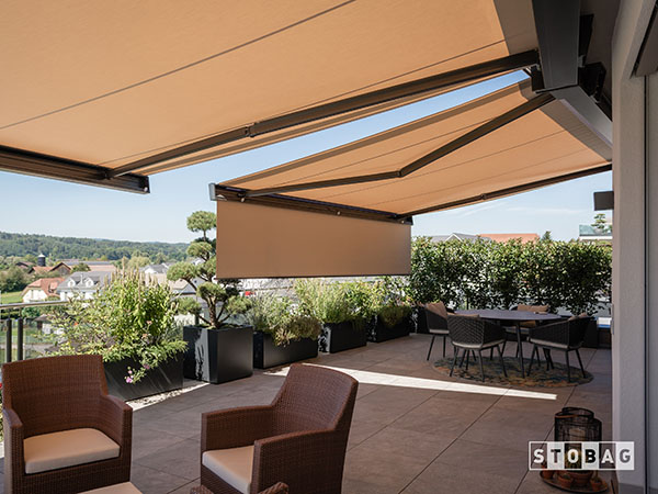 Le store banne est également appelé store à déploiement ou store à projection. Equipé d’un coffre (également appelé caisson), il se différencie des autres stores à projection, par le fait que le mécanisme et la toile sont protégés. Lorsqu’il est enroulé, le store bénéficie ainsi d’une protection totale contre les intempéries et les saletés.